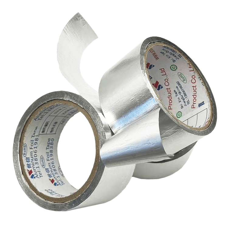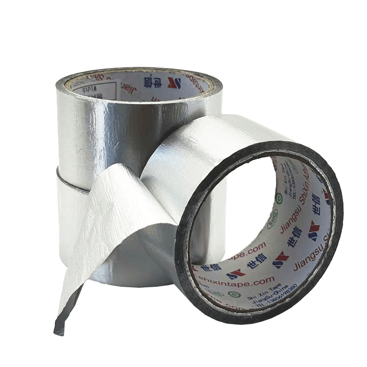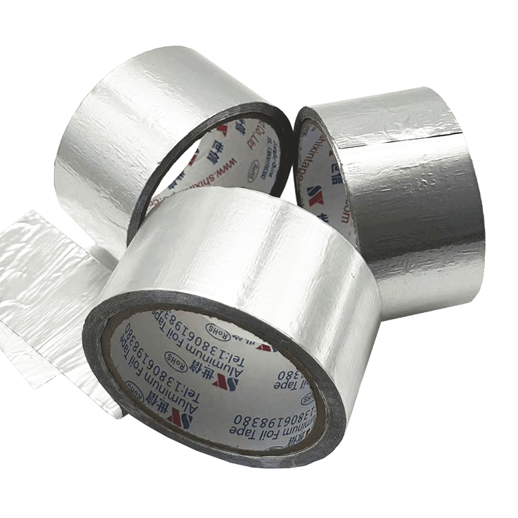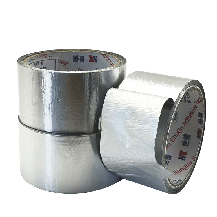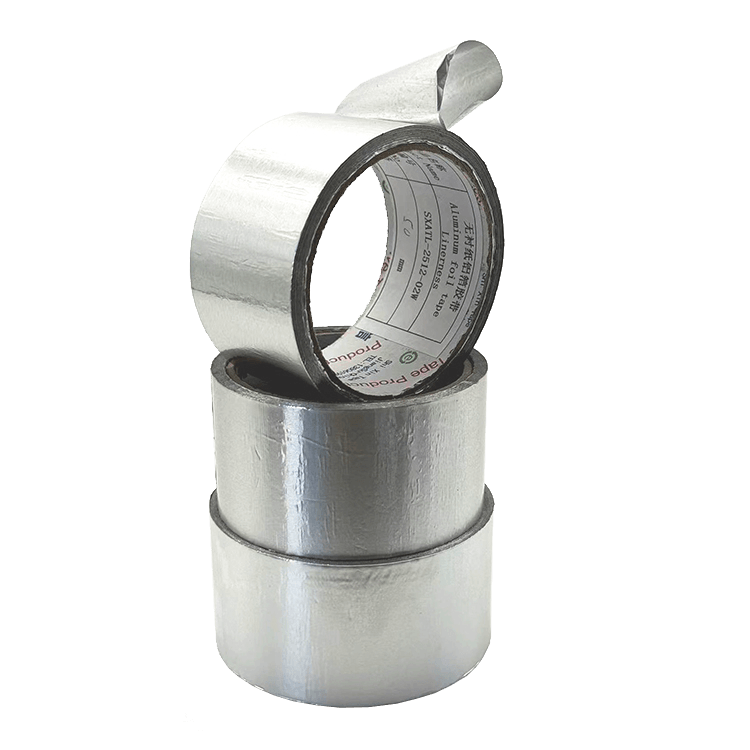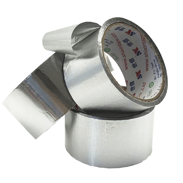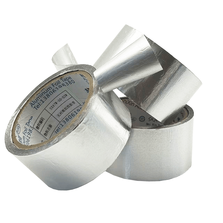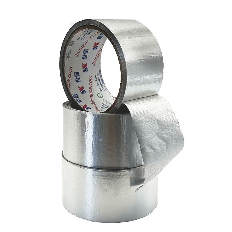 Linerless aluminium foil taeniola late adhibetur ad signandos ductus aeris, stratis velitationis et fistularum evacuatione.
